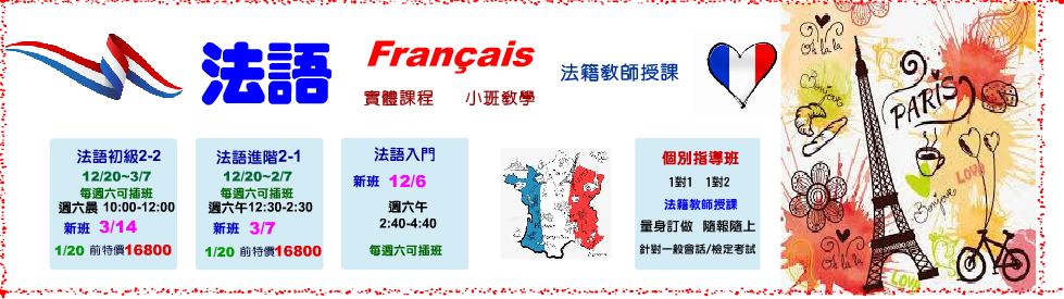 法語入門 12/6 週六午 2:40~4:40 法籍教師 Raphael【每週六 可插班】