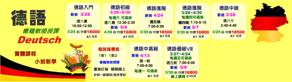 德語入門 3/28 週六晨 10:00-12:00 德籍教師 Gunther【3/25前 特價18000元】